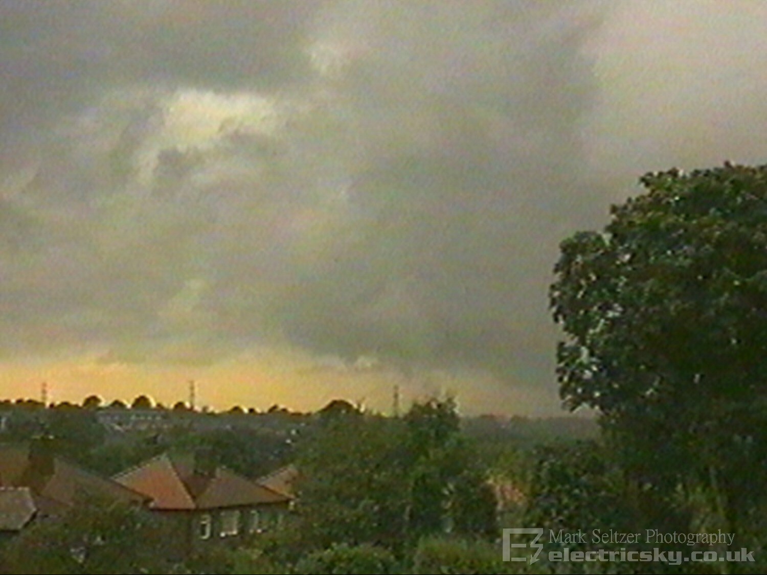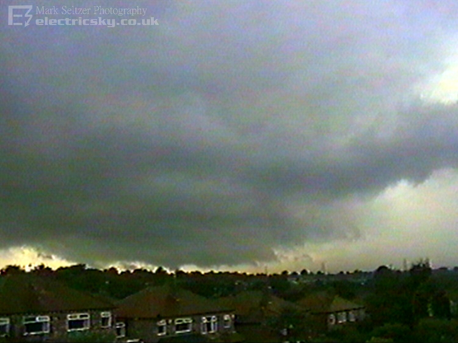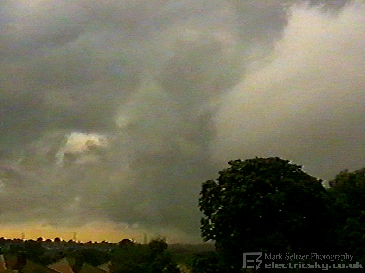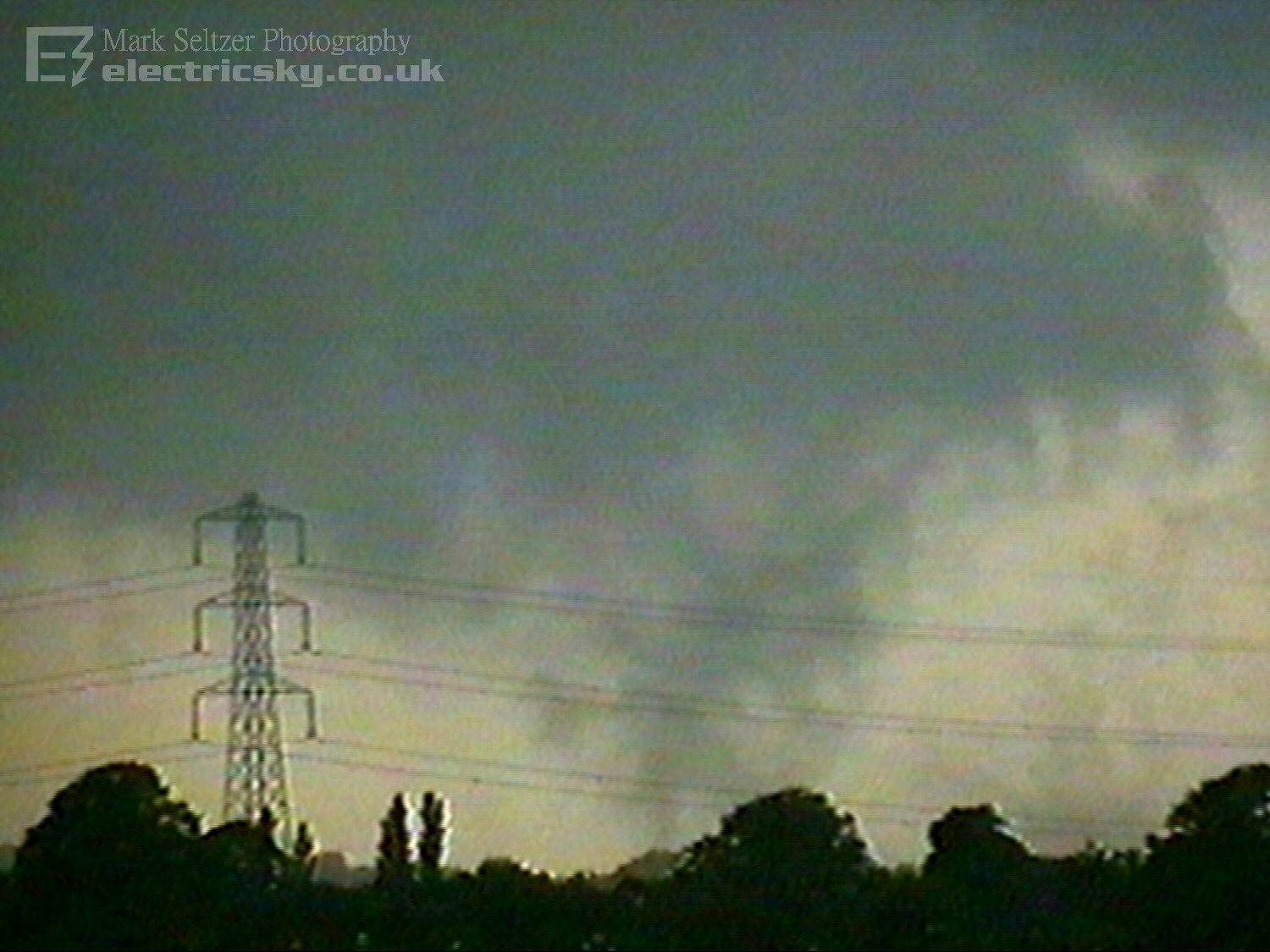 electrified thunderstorm. A linear tail of torrential rain swept up from the